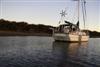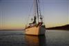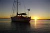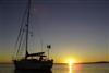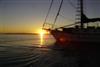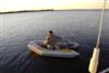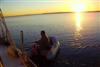 chris in dinghy sunset